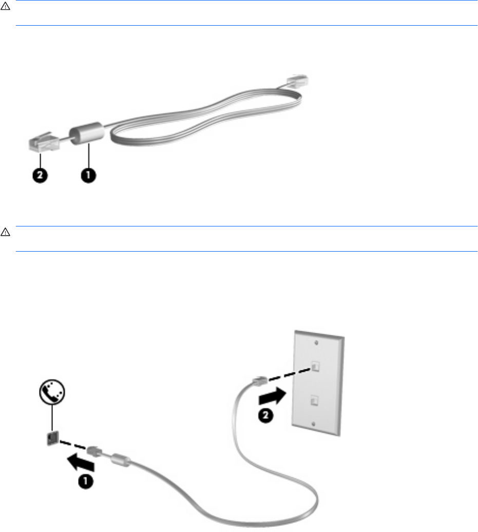 2. Zapojte kabel modemu do telefonní zásuvky RJ-11 (2).