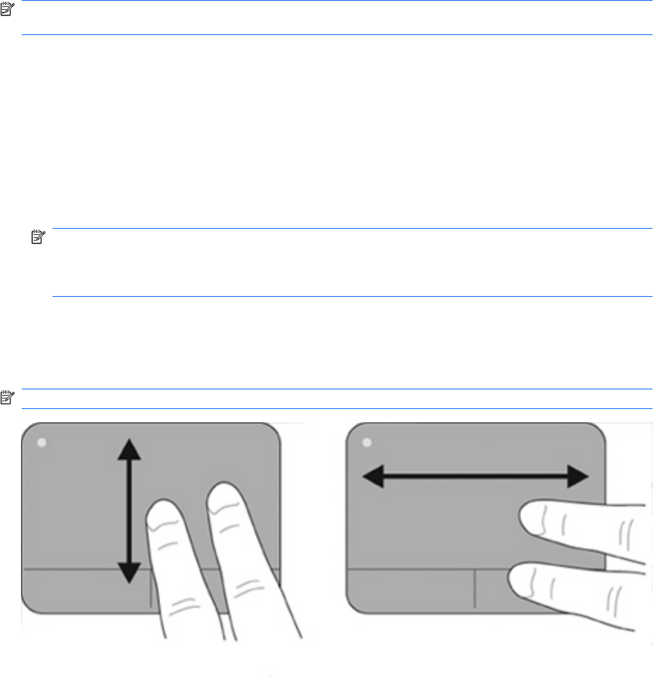 The TouchPad gestures described in this section are enabled at the factory. To disable or reenable