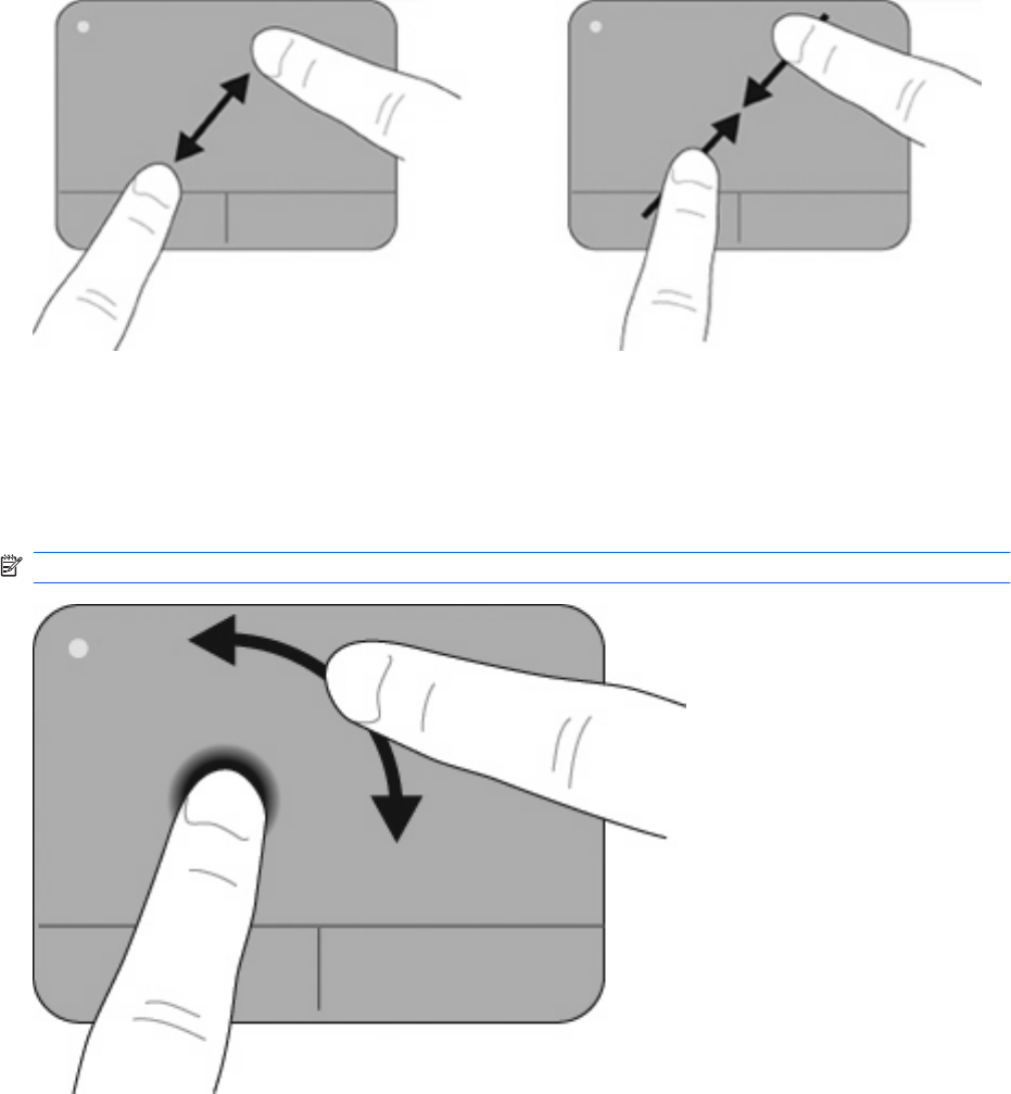 the TouchPad zone. Move the right forefinger around the anchored finger in a sweeping motion, moving