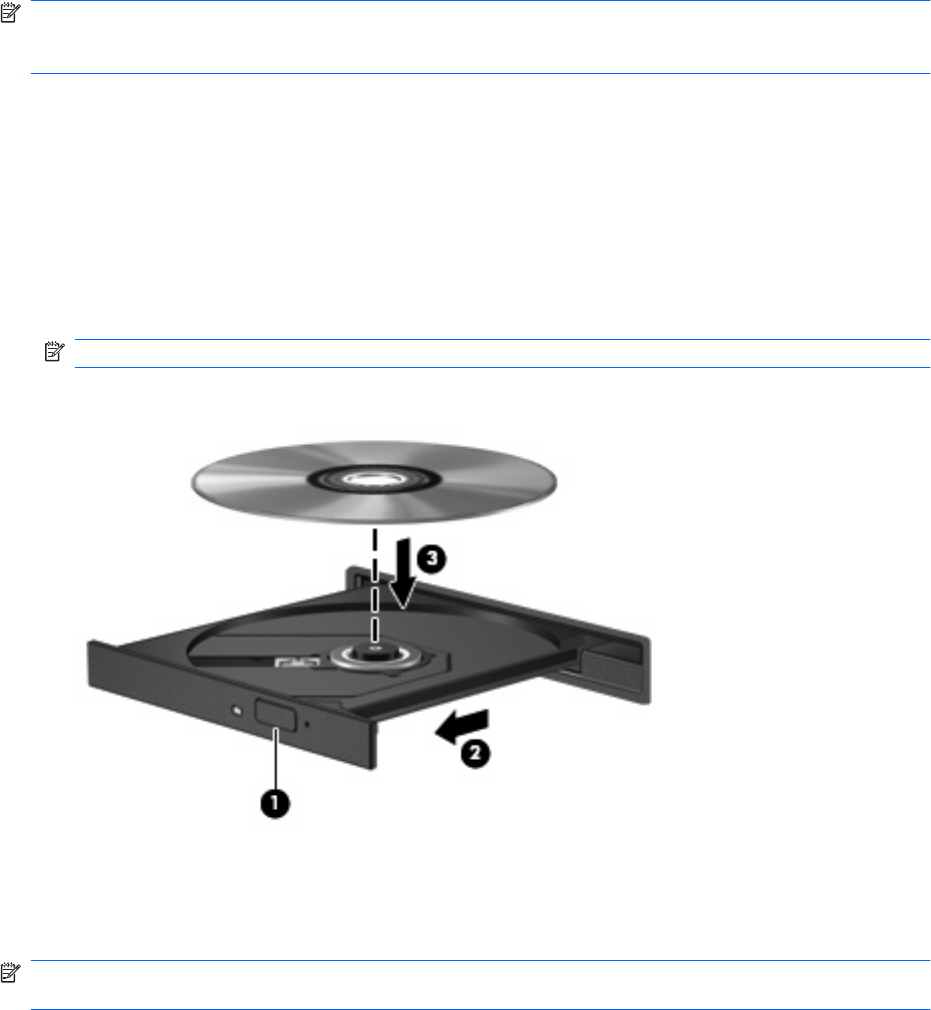 2. Press the release button (1) on the drive bezel to release the disc tray.
