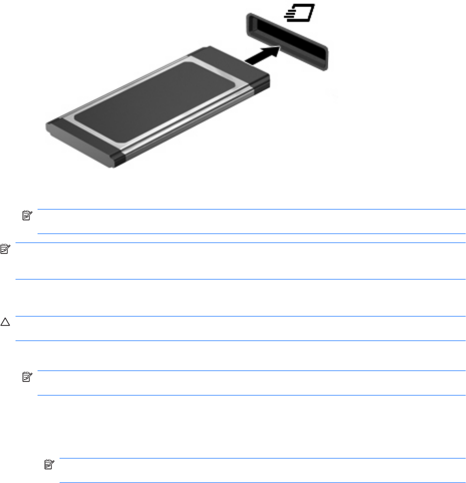 2. Inserire la scheda ExpressCard nello slot e premere fino al suo completo inserimento.