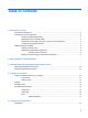 Table of contents 1 Introduction to security HP ProtectTools features ..................................................................................................................... 2 Achieving key security objectives ......................................................................................................... 3 Protecting against targeted theft .......................................................................................... 3 Restricting access to sensitive data ...............