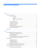 Indholdsfortegnelse 1 Funktioner ....................................................................................................................................................... 1 Identifikation af hardware ..................................................................................................................... 1 Komponenter foroven .......................................................................................................... 1 TouchPad .......................................