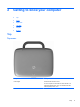Bottom Component (1) Description Computer handle (select models only) Allows you to carry the computer. CAUTION: To reduce the risk of damaging the computer, close the computer before picking it up by the handle. (2) Service access cover Provides access to the hard drive bay, a memory module slot, and the wireless local area network (WLAN) module. (3) Battery locking latch Locks the battery into the battery bay. (4) Vent Enables airflow to cool internal components.