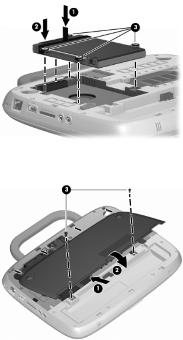 3. Align the tabs (1) on the service access cover with the notches on the computer.