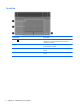 TouchPad Componente 4 Descrizione (1) Indicatore di disattivazione del TouchPad Consente di attivare e disattivare il TouchPad. Toccarlo rapidamente con due colpetti leggeri per accendere e spegnere il TouchPad. (2) Area del TouchPad Consente di spostare il puntatore e di selezionare o attivare gli elementi sullo schermo. (3) Pulsante sinistro del TouchPad Ha la stessa funzione del pulsante sinistro di un mouse esterno.