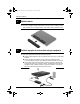 598077-231.book Page 2 Tuesday, December 15, 2009 3:43 PM Základná inštalácia 2 Vložte batériu VAROVANIE! Aby ste predišli možným problémom s bezpečnosť ou, používajte Å len sieť ový napájací adaptér alebo batériu, ktoré boli súčasť ou dodávky počítača alebo náhradný sieť ový napájací adaptér, resp. batériu dodanú spoločnosť ou HP.