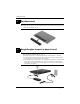 Konfigurasi Dasar 2 Masukkan baterai PERINGATAN: Untuk mengurangi masalah keselamatan yang potensial, gunakan hanya Å adaptor AC atau baterai yang disediakan bersama komputer, adaptor AC pengganti atau baterai yang disediakan oleh HP. 3 Menghubungkan komputer ke daya eksternal PERINGATAN: Untuk mengurangi risiko sengatan listrik atau kerusakan pada perlengkapan Å Anda, biasakanlah melakukan hal-hal berikut ini: ■ Colokkan kabel listrik ke stopkontak listrik AC yang mudah dijangkau setiap saat.