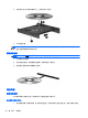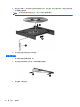 1. 按驱动器挡板上的释放按钮 (1) 释放光盘托盘,然后轻轻向外拉出托盘 (2),直至不能拉动为止。