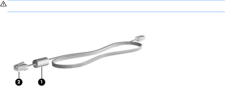 1. Plug the modem cable into the modem jack (1) on the computer.