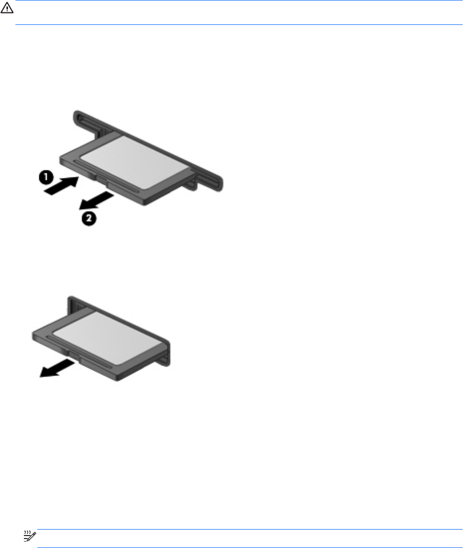 3. Either press in on the card (1), and then remove it from the slot (2).