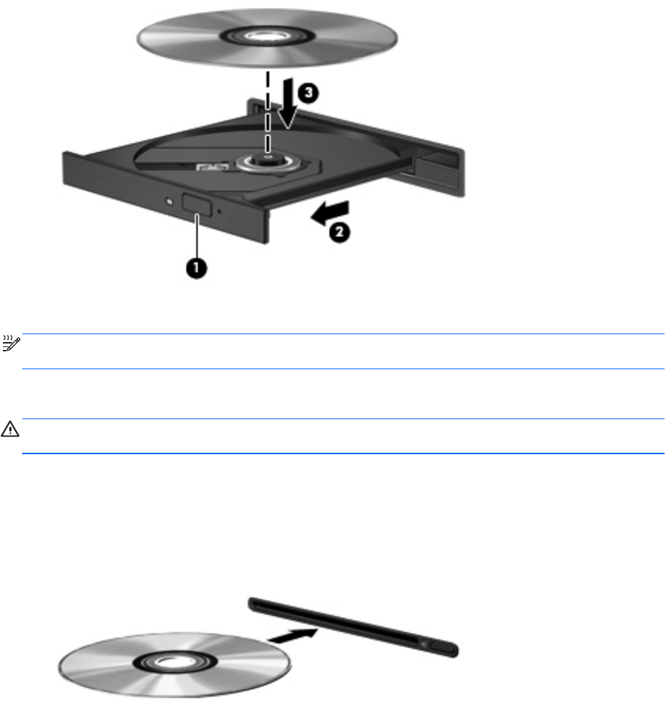 CAUTION: Do not insert 8-cm optical discs into a slot load optical drive. It may cause damage to