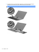 13. Frigør ZIF-stikket (1), som tastaturkablet er fastgjort til, og kobl derefter tastaturkablet (2) fra