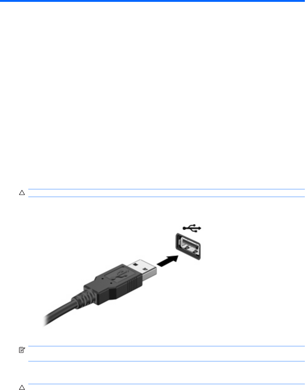FORSIGTIG: Anvend minimal kraft til at tilslutte en USB-enhed for at undgå at beskadige USB-stikket.