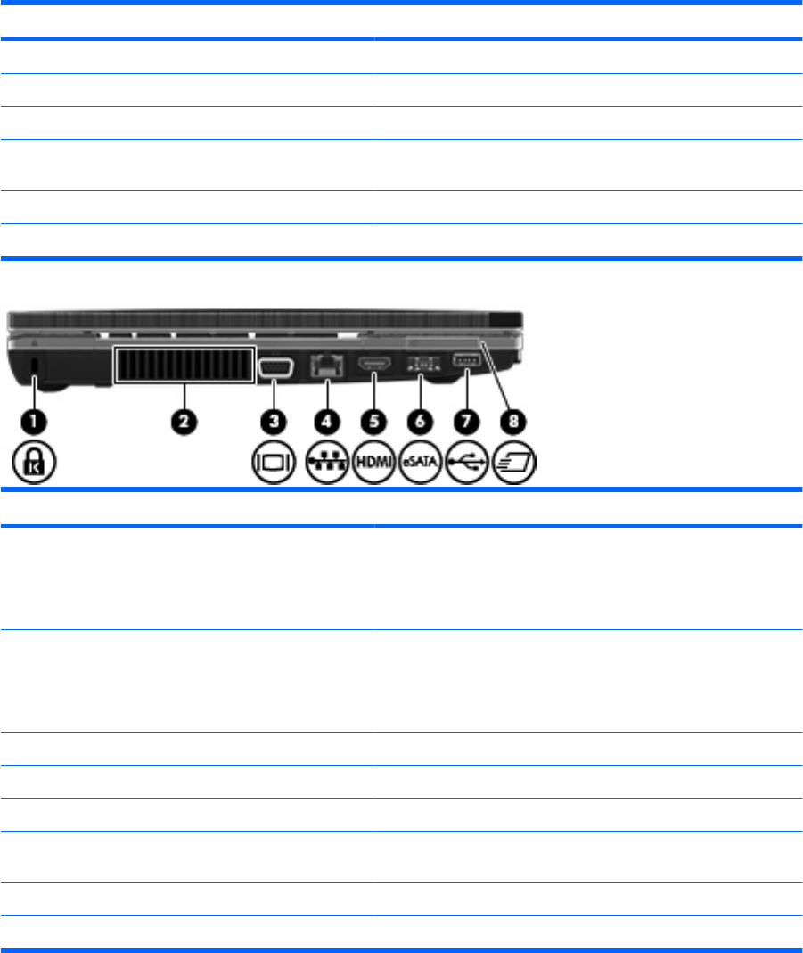 (8) Combo eSATA/USB-port Tilslutter en valgfri USB-enhed eller en højtydende eSATA-