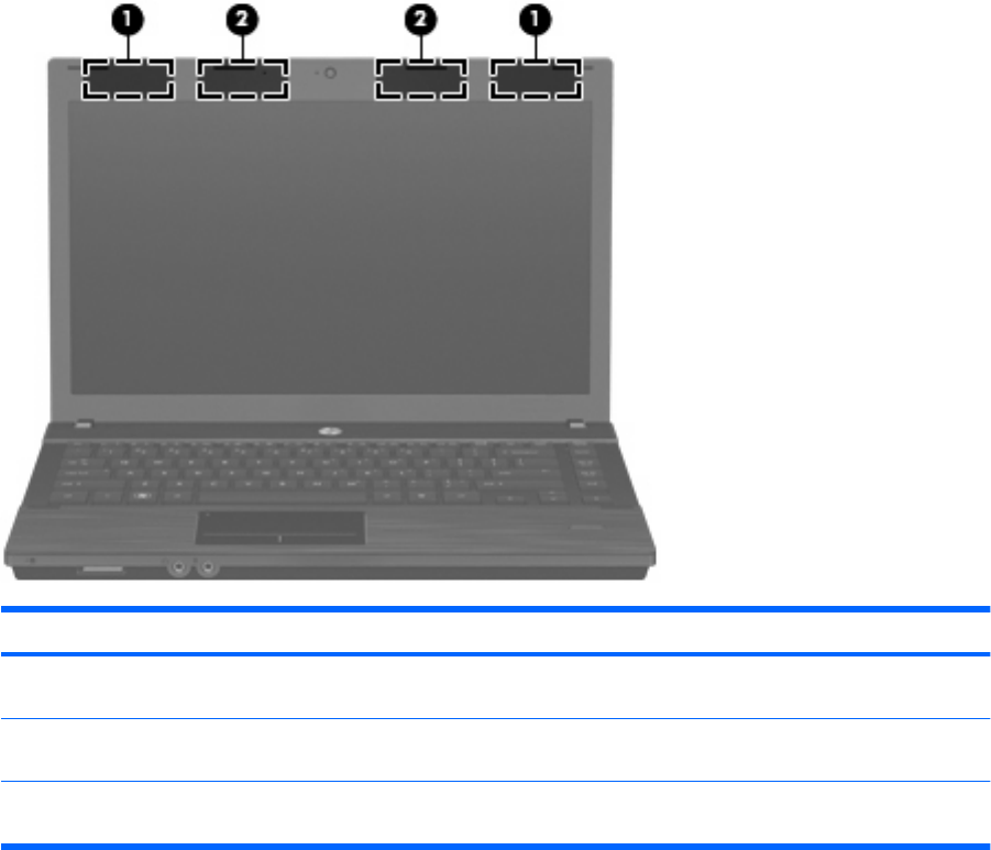 (1) WWAN-antenner (2)* Sender og modtager trådløse signaler til kommunikation med