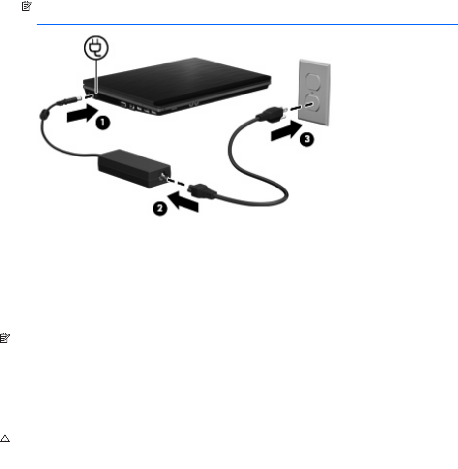 batteristrøm. Når computeren er tilsluttet ekstern vekselstrøm, kører computeren på vekselstrøm.