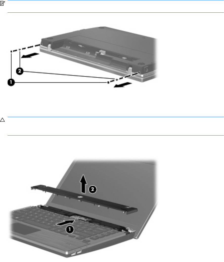 8. Verwijder de 2 afdekplaatjes (1) en schroeven (2) uit de achterkant van de computer.