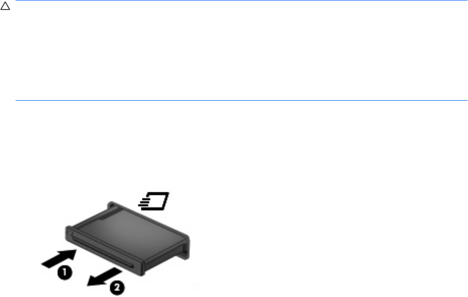 VOORZICHTIG: Plaats een PC Card niet in een ExpressCard-slot, om beschadiging van de computer
