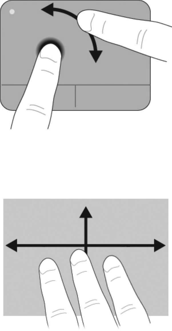 Plaats drie vingers enigszins uit elkaar op het touchpad. Tik met uw drie vingers over het touchpad in