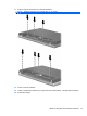 19. Voltee el equipo hacia abajo sobre una superficie plana, con el compartimiento de la batería hacia