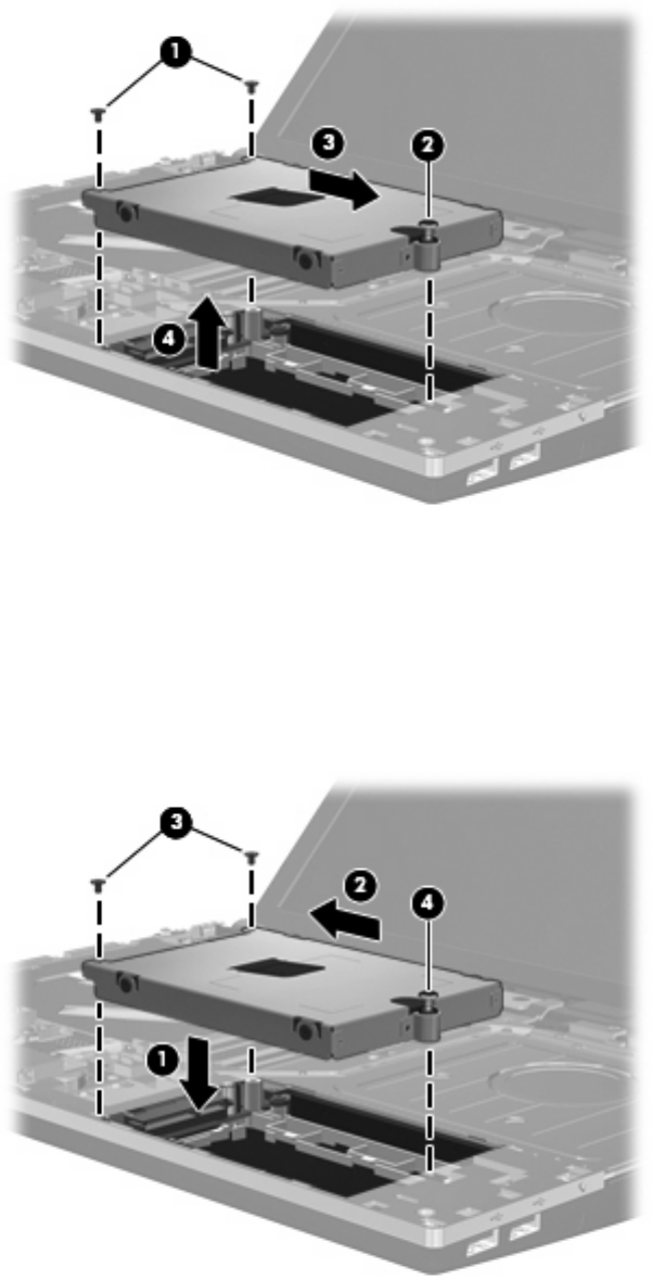 3. ハードドライブの 2 つのネジ3を取り付け、ハードドライブをコンピューターに固定するた
