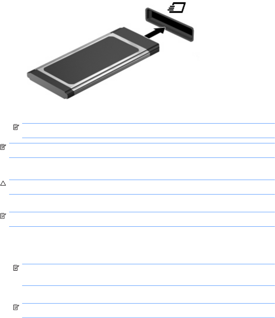 2. カードを ExpressCard スロットに挿入し、しっかり装着されるまで押し込みます。