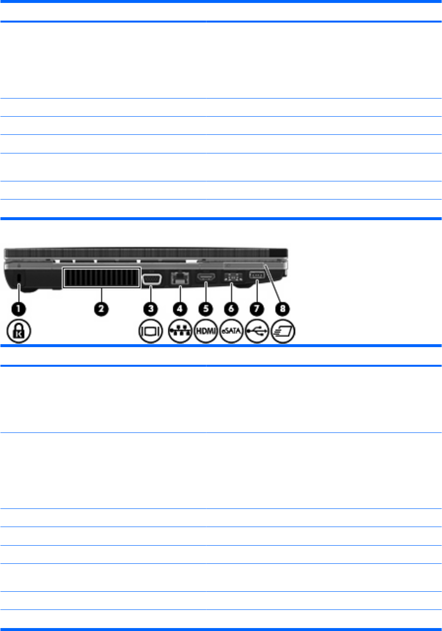 (8) eSATA/USB コンボ コネクタ 別売の USB デバイス、または eSATA 外部ハードドライブなどの