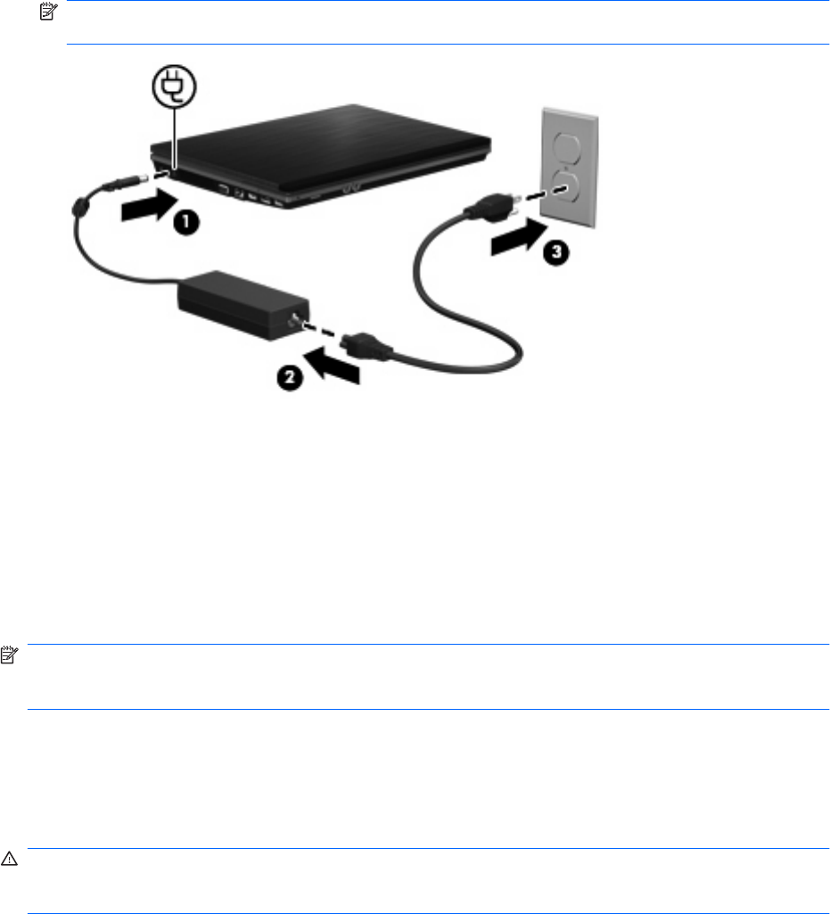 Ha a számítógép feltöltött akkumulátort tartalmaz, és a váltakozó áramú adapteren keresztül külső
