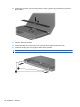 6. Položte klávesnicu hornou stranou nadol na opierku zápästí počítača (1).