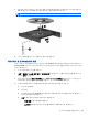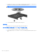 주: 트레이가 완전히 빠지지 않으면 디스크를 꺼낼 때 조심스럽게 기울이십시오.