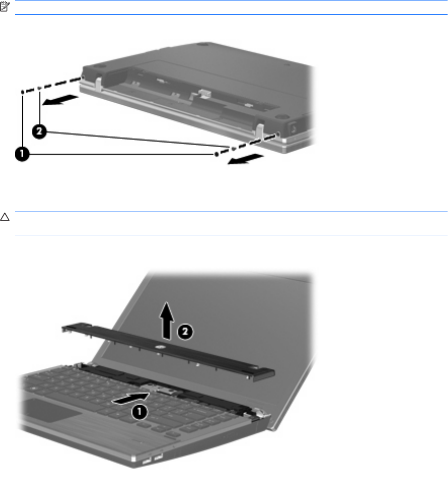 10. Slide the switch cover straight back toward the display (1), and then remove the switch cover (2).