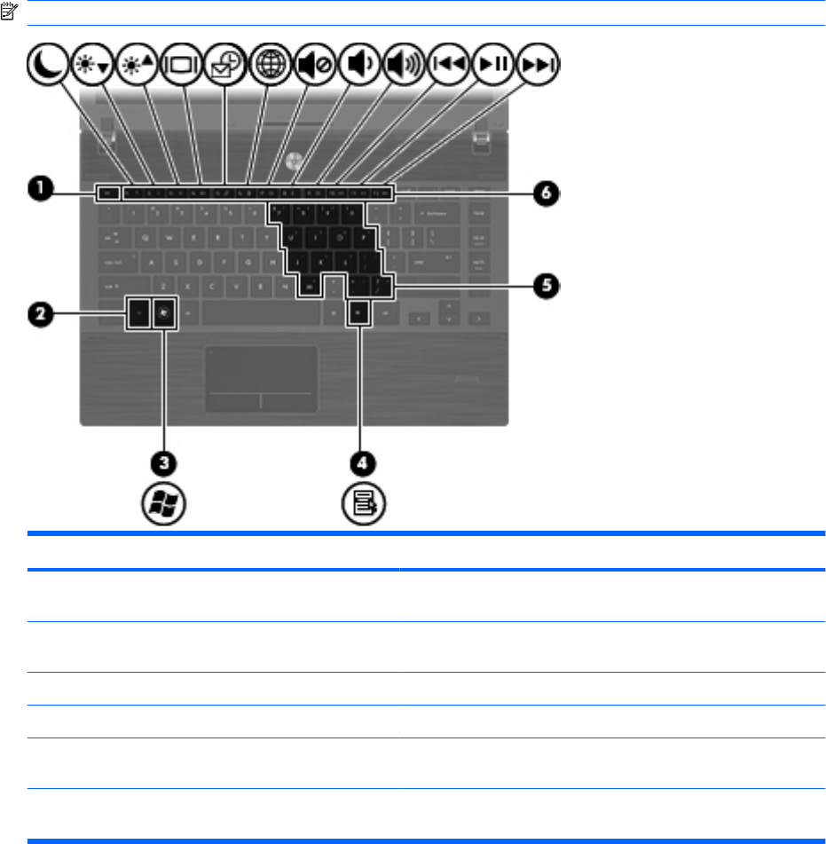 (4) Windows applications key Displays a shortcut menu for items beneath the cursor.