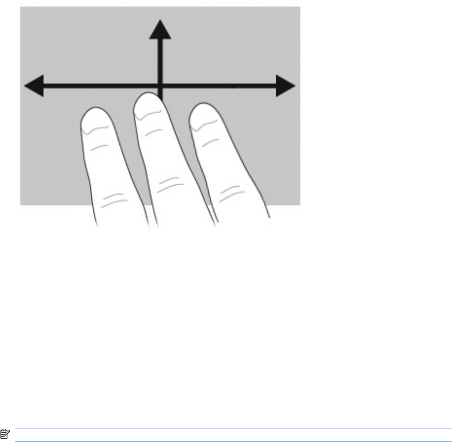 Place three fingers slightly separated on the TouchPad. Flick your three fingers across the TouchPad