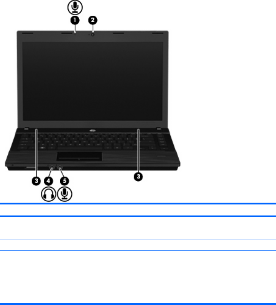 (5) Audio-in (microphone) jack Connects an optional computer headset microphone, stereo array