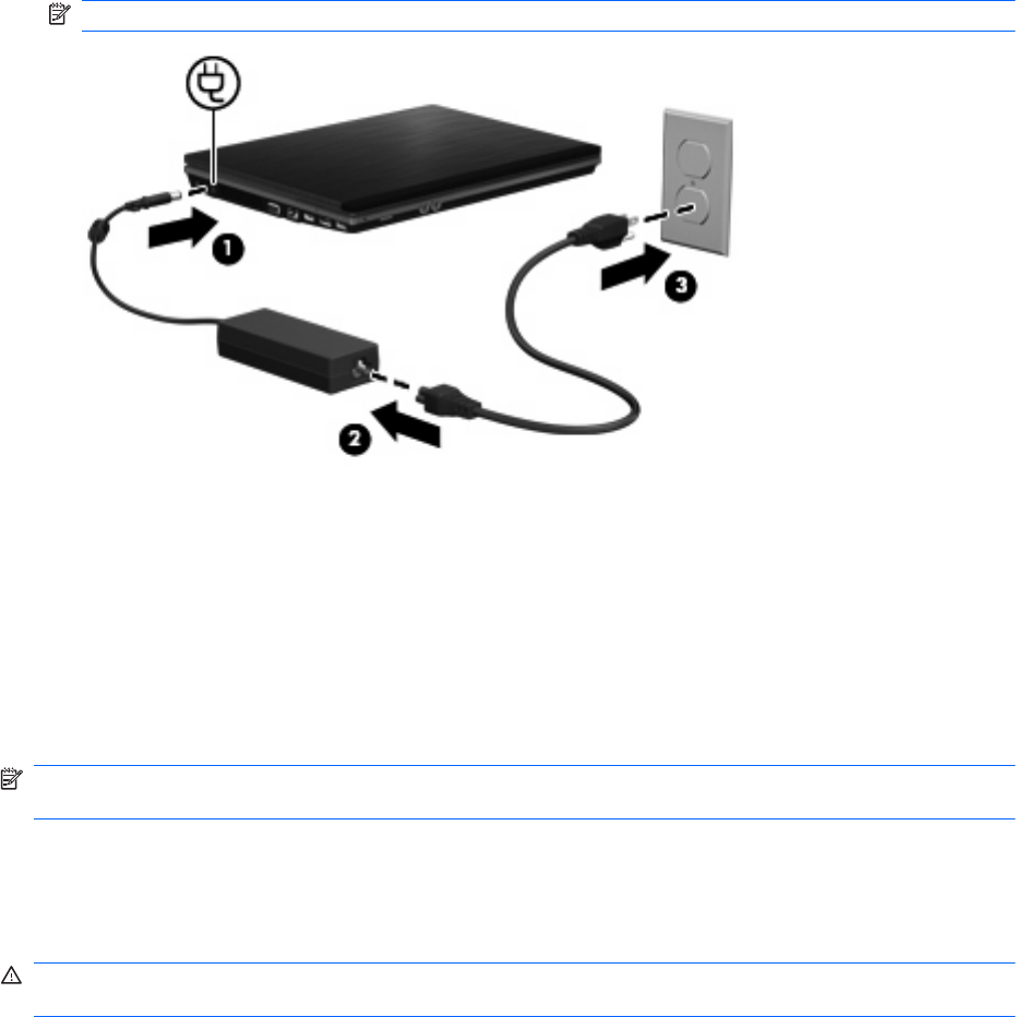 computer runs on battery power. When the computer is plugged into external AC power, the computer