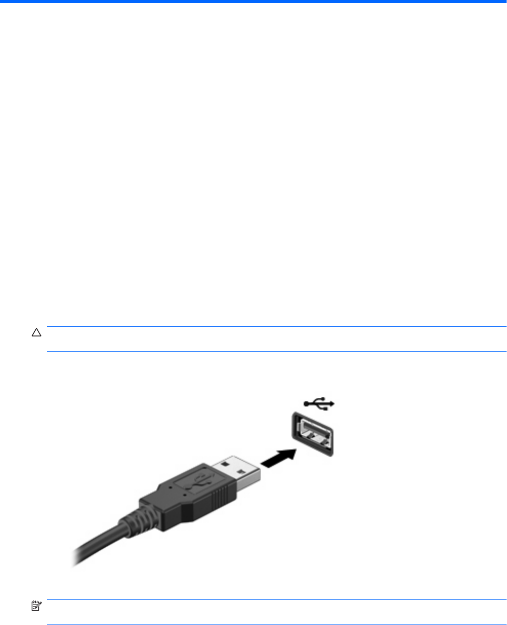 PRECAUCIÓN: Para evitar dañar un conector USB, utilice la mínima fuerza posible para conectar un