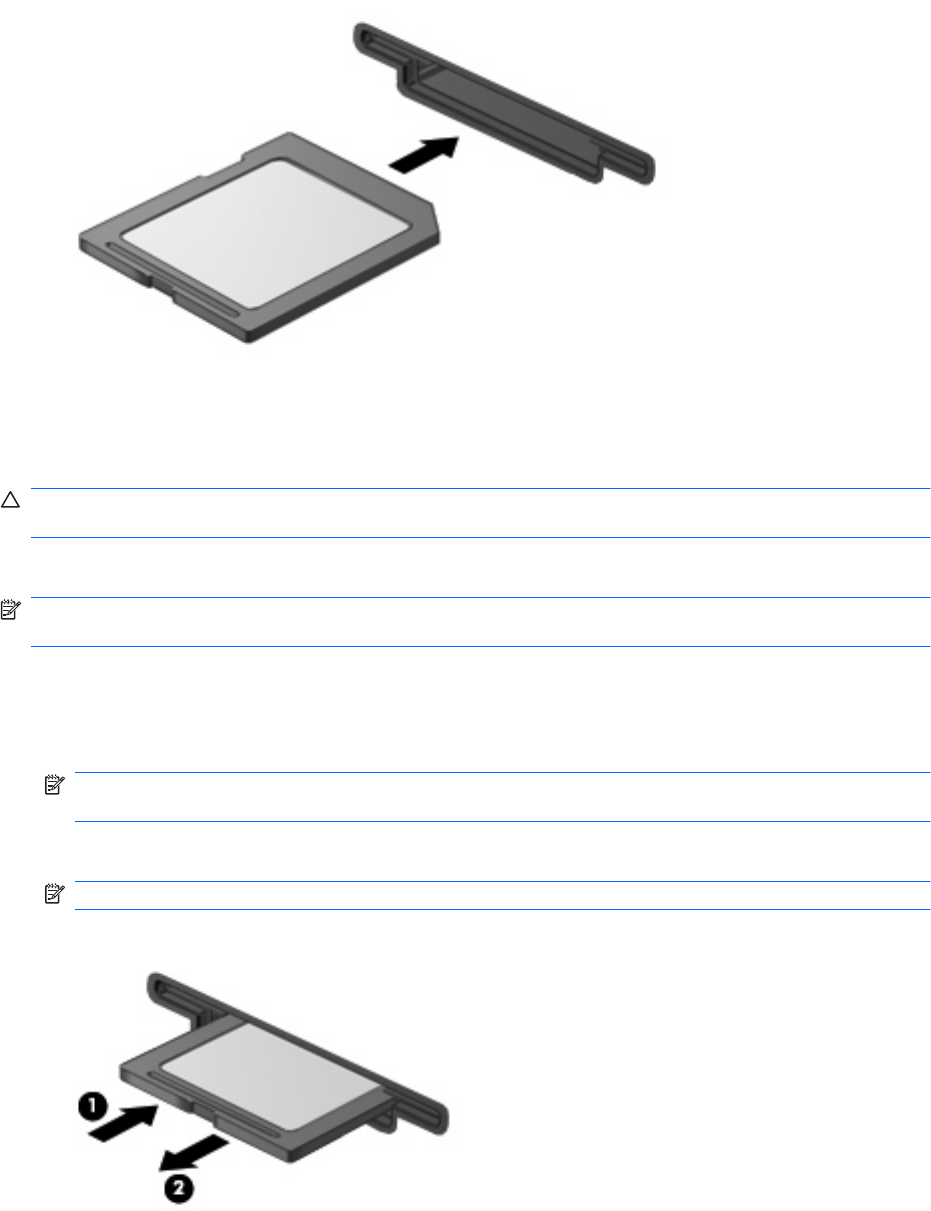 3. Para expulsar la tarjeta digital, presione en la tarjeta digital (1) y luego retírela de la ranura (2).