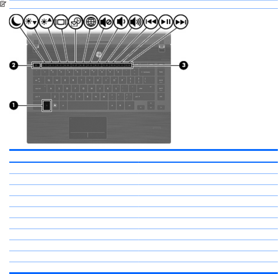 Las teclas de acceso rápido son combinaciones de la tecla fn (1) y la tecla esc (2) o una de las teclas