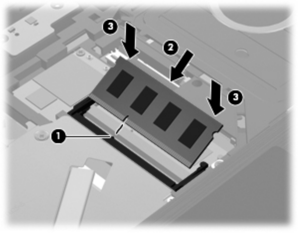 modulo di memoria, spingerlo con delicatezza verso il basso (3) fino a far scattare i gancetti