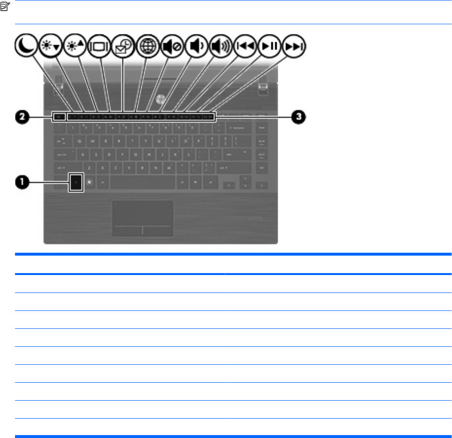 I tasti di scelta rapida sono combinazioni del tasto fn (1) con il tasto esc (2) o con uno dei tasti funzione