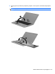 12. Klavyeyi ekrana (1) doğru geri kaydırın, sonra da klavye kablosu konektörüne erişecek şekilde öne