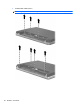 15. El desteğini tabandan ayrılana kadar sağa kaydırın (1) ve sonra bilgisayarın üzerine bırakın (2).