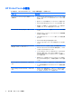 HP ProtectTools の機能 以下の表で、HP ProtectTools モジュールの主な機能を詳しく説明します。 モジュール HP ProtectTools Security Manager 管理者コンソール ● (管理者用) HP ProtectTools Security Manager セットアップ ウィザードを使 用して、セキュリティ レベルおよびセキュリティ ログイン方法 を設定します ● 基本ユーザーからは非表示になっているオプションを設定します ● Device Access Manager およびユーザー アクセスを設定します ● 管理者ツールを使用して、HP ProtectTools ユーザーを追加およ び削除したり、ユーザーの状態を表示したりします HP ProtectTools Security Manager(一般ユーザー用) ● ユーザー名およびパスワードを整理、セットアップ、および変更 します ● Windows®パスワードやスマート カードなどユーザーの証明情報 を設定および変更します ● File Sanitizer のシュレッド、ブリー