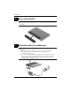 Perusasennus Pidä tietokone liitettynä ulkoiseen virtalähteeseen, kunnes akun merkkivalo sammuu. käyttää tietokoneessa uutta osittain ladattua akkua, kun ohjelmiston asennus ✎ Voit on valmis, mutta akun tilailmaisin osoittaa latauksen tilan oikein vasta, kun uusi akku on ladattu täyteen. Akun merkkivalo (tietokoneen vasemmalla puolella) palaa, kun akku on latautumassa.