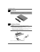 Grundläggande installation 2 Sätt i batteriet Minska risken för säkerhetsproblem genom att bara använda datorns Å VARNING: medföljande nätadapter eller batteri, en reservnätadapter eller ett reservbatteri från HP. 3 Anslut datorn till elnätet Så här minskar du risken för elstötar och skador på utrustningen: Å VARNING: ■ Anslut strömkabeln till ett eluttag som alltid är enkelt att nå.