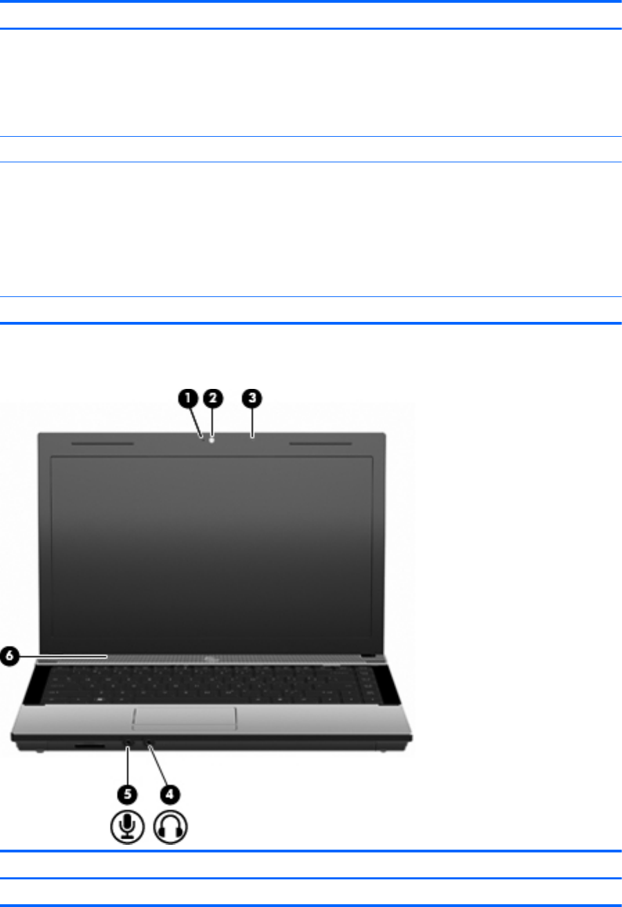 (1) Lampica Web kamere (samo odabrani modeli) Uključena: Web kamera je u upotrebi.