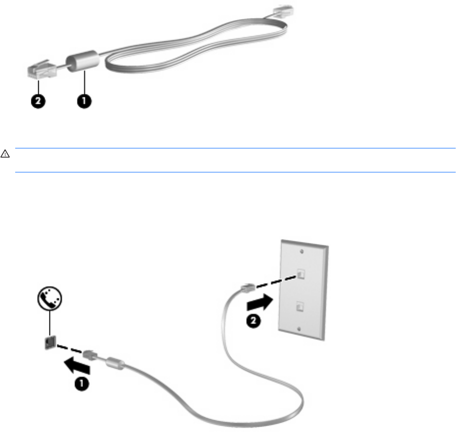 2. Plugg modemkabelen i den landspesifikke modemkabeladapteren (2).