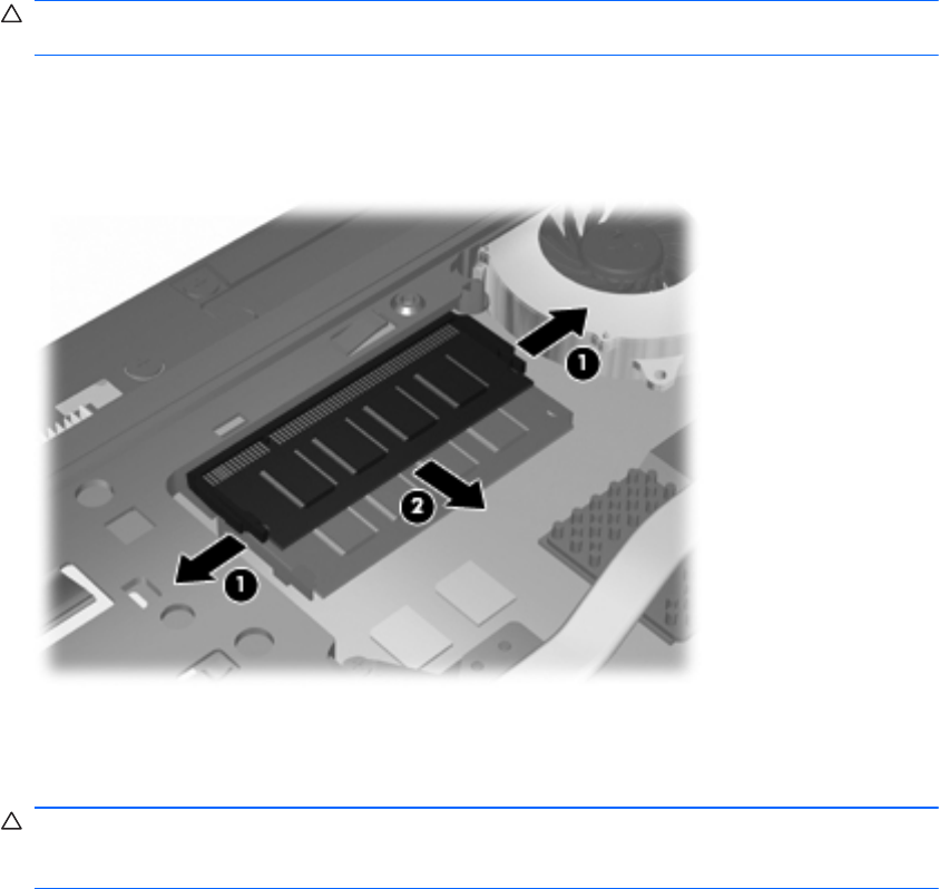 9. 以下の要領で、拡張メモリ スロットからメモリ モジュールを取り外します。