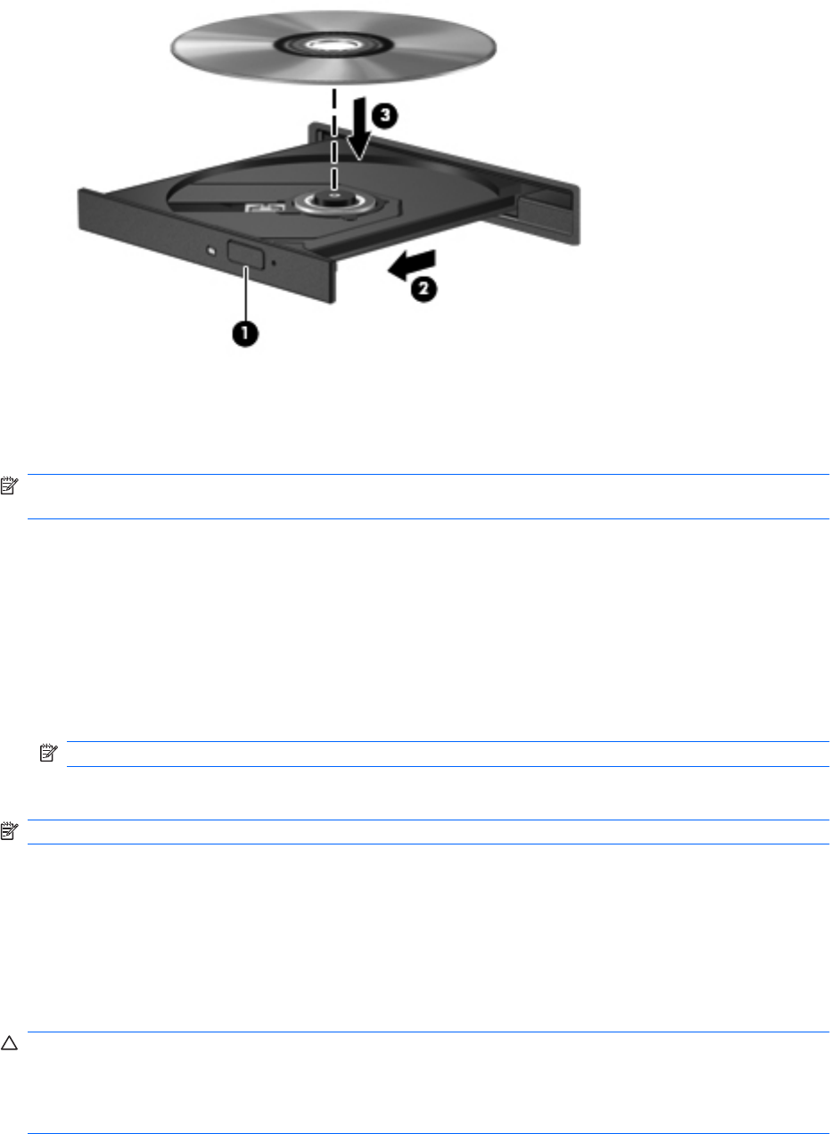 5. 確実に収まるまでディスクをゆっくり押し下げます(3)。